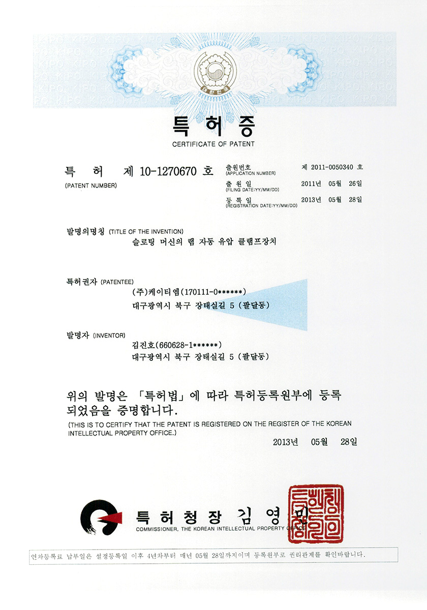 슬로팅 머신의 램 자동 유압 클램프 장치