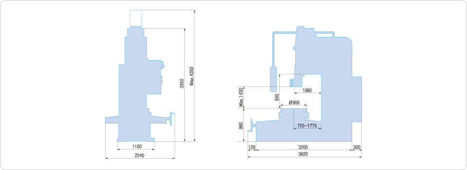 | 테이블 중심과 칼럼의 거리 | table center to column | 725~1775mm |