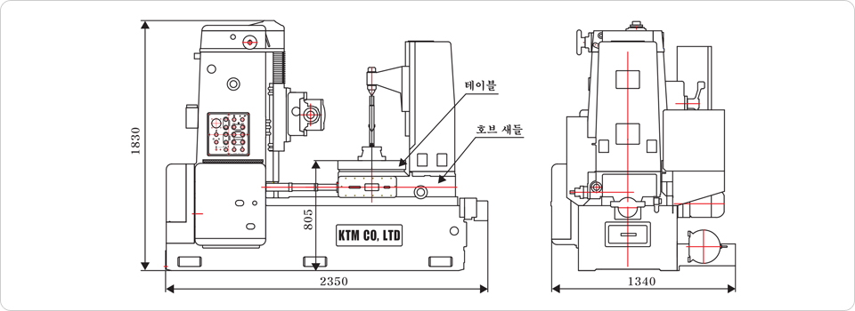 | 호브 새들의 최대 이송거리 | Max. travel of hob saddle | 380mm(15.35″) |