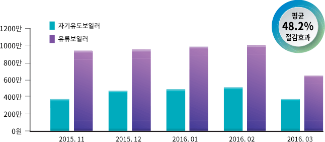 유류보일러 대비 자기유도보일러 설치시 절감비용효과