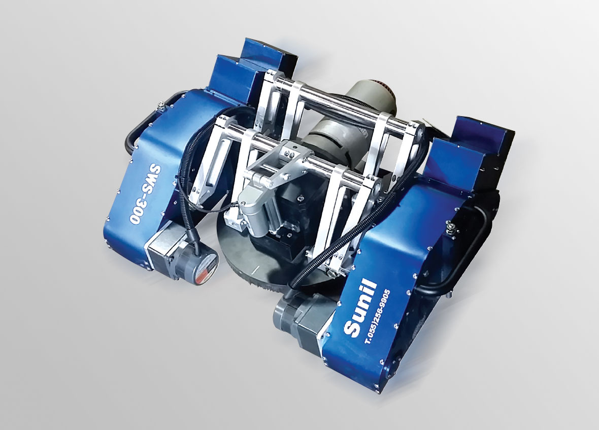 영구자석을 이용해 케타필라 방식으로 주행 하며 다이아몬드 휠 또는 수세미 휠로